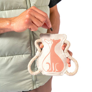 Perfect for dogs of all sizes and ages, Gemini’s unique vase shape is designed to hold and hide treats, encouraging foraging instincts through engaging interactive play. Crafted from durable organic cotton canvas with cotton and jute rope handles, this plastic-free toy combines the safety of natural textures with a rewarding playtime experience.