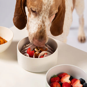 Bring on the good vibes with the silicone suction cup insert that can turn any bowl into a slow feeder. The Good Vibes Slow Feeder is easy to remove for washing and can be used with both wet and dry food. Slow down your dog's eating to help prevent bloat, indigestion, and many other digestive health problems.